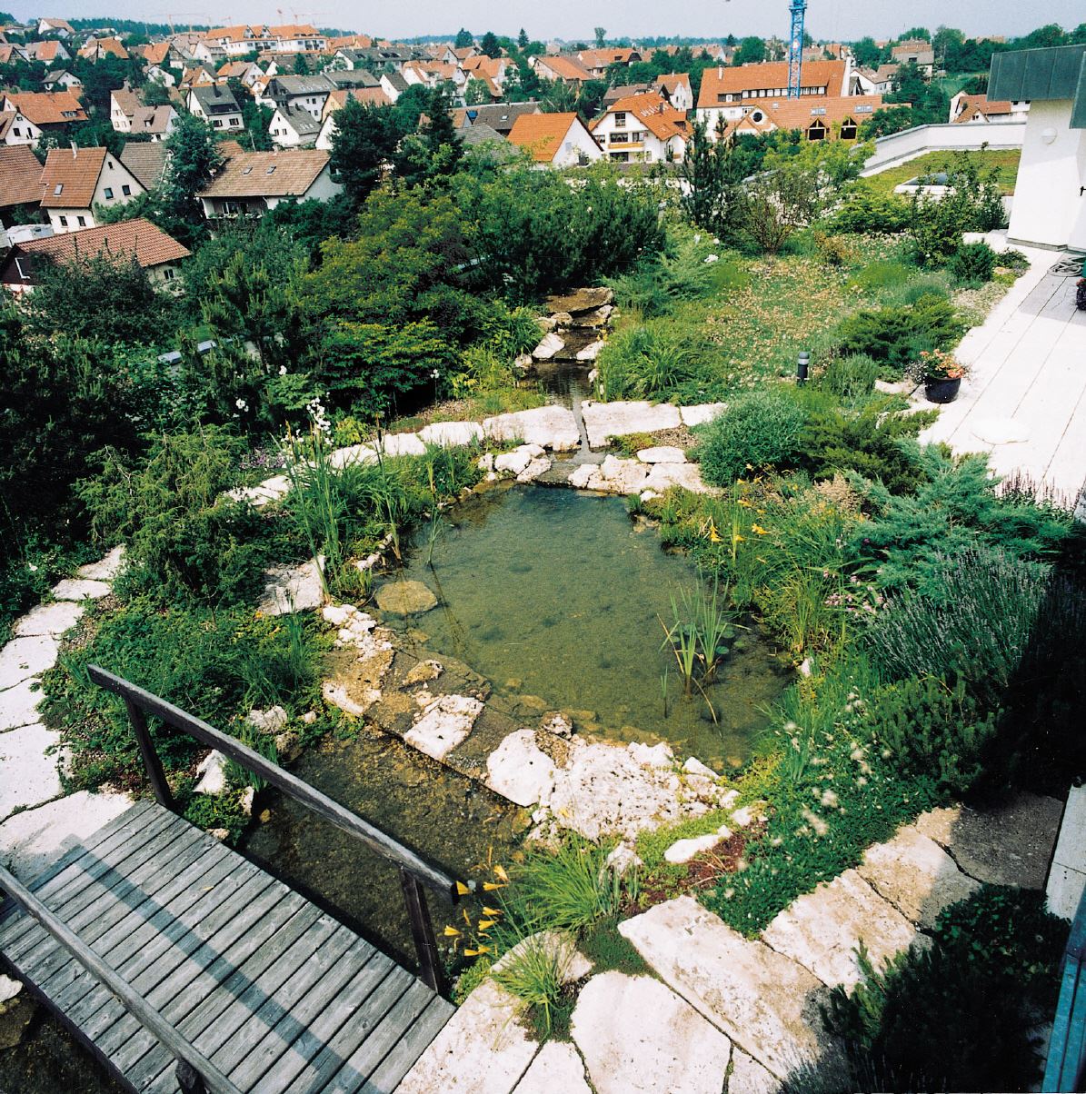 Die pflegeintensive Möglichkeit der Dachbegrünung, wobei hier nocheinmal unterschieden wird zwischen der "aufwendigen" und der "einfachen" Intensivbegrünung.
